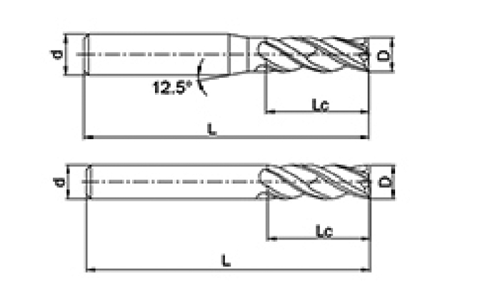 | Hayır. | Çap D | Flüt Uzunluğu Lc | Toplam Uzunluk L | Şaft Çapı d | Bıçak Sayısı F |
