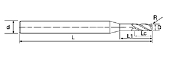 | Hayır. | Çap D | R Açısı R | Flüt Uzunluğu Lc | Etkili Uzunluk L1 | Toplam Uzunluk L | Şaft Çapı d | Bıçak Sayısı F |