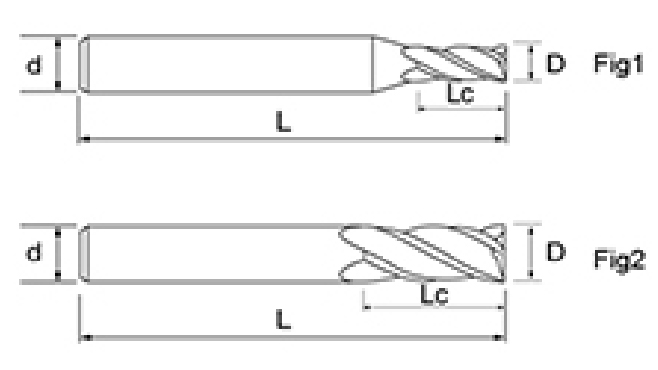 | Hayır. | Çap D | Flüt Uzunluğu Lc | Toplam Uzunluk L | Şaft Çapı d | Bıçak Sayısı F |
