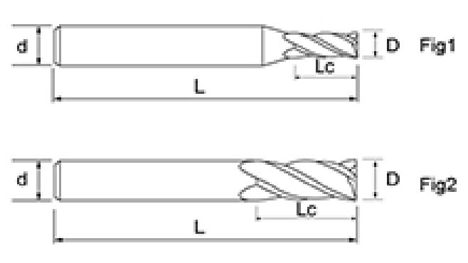 | Hayır. | Çap D | Flüt Uzunluğu Lc | Toplam Uzunluk L | Şaft Çapı d | Bıçak Sayısı F |