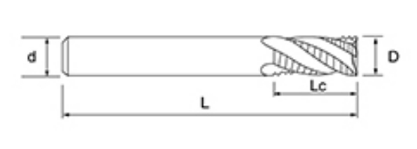 | Hayır. | Çap D | Flüt Uzunluğu Lc | Toplam Uzunluk L | Şaft Çapı d | Bıçak Sayısı F |