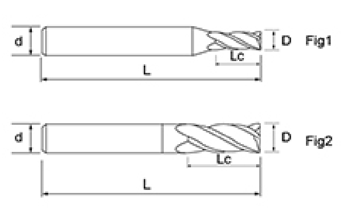 | Hayır. | Çap D | Flüt Uzunluğu Lc | Toplam Uzunluk L | Şaft Çapı d | Bıçak Sayısı F |