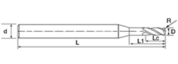 | Hayır. | Çap D | R Açısı R | Flüt Uzunluğu Lc | Etkili Uzunluk L1 | Toplam Uzunluk L | Şaft Çapı d | Bıçak Sayısı F |