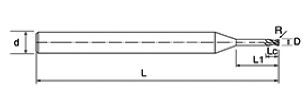 | Hayır. | Çap D | R Açısı R | Flüt Uzunluğu Lc | Etkili Uzunluk L1 | Toplam Uzunluk L | Şaft Çapı d | Bıçak Sayısı F |