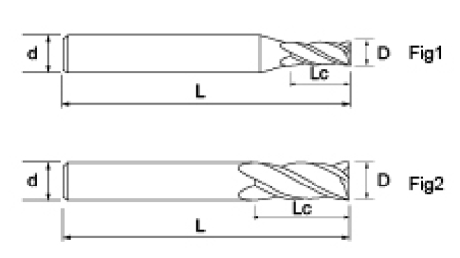 | Hayır. | Çap D | Flüt Uzunluğu Lc | Toplam Uzunluk L | Şaft Çapı d | Bıçak Sayısı F |