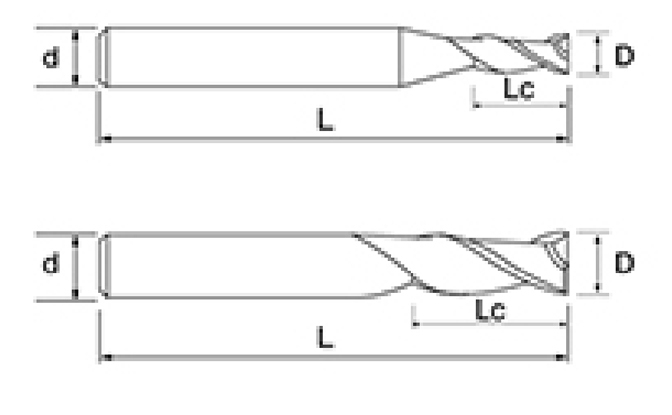 | Hayır. | Çap D | Flüt Uzunluğu Lc | Toplam Uzunluk L | Şaft Çapı d | Bıçak Sayısı F |