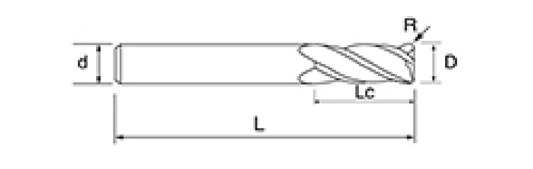 | Hayır. | Çap D | R Açısı R | Flüt Uzunluğu Lc | Toplam Uzunluk L | Şaft Çapı d | Bıçak Sayısı F |