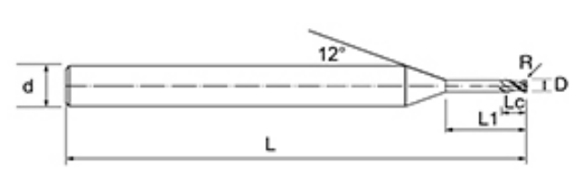 | Hayır. | Çap D | R Açısı R | Flüt Uzunluğu Lc | Etkili Uzunluk L1 | Toplam Uzunluk L | Şaft Çapı d | Bıçak Sayısı F |