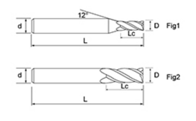 | Hayır. | Çap D | Flüt Uzunluğu Lc | Toplam Uzunluk L | Şaft Çapı d | Bıçak Sayısı F |