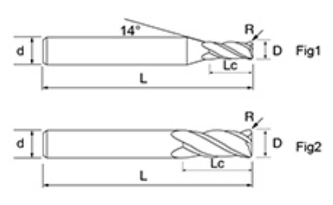 | Hayır. | Çap D | R Açısı R | Flüt Uzunluğu Lc | Toplam Uzunluk L | Şaft Çapı d | Bıçak Sayısı F |