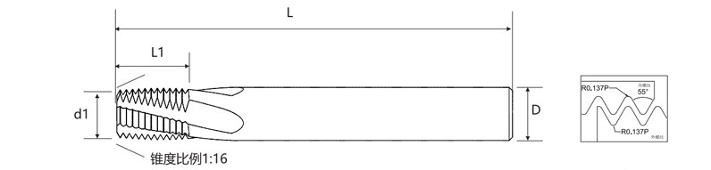 Bu frezeleme takımı, karbon çeliği, alaşımlı çelik, paslanmaz çelik, dökme demir, demir dışı metaller ve plastikler dahil olmak üzere çeşitli malzemeler için uygundur. RC1/16'dan 2"'e kadar çok sayıda spesifikasyonda mevcuttur ve farklı uygulama ihtiyaçlarını karşılamak için esneklik sağlar. Takımın tasarımı, kesme çapı d1, etkin kesme uzunluğu L1, sap çapı D ve toplam uzunluk L dahil olmak üzere uyarlanabilir parametre konfigürasyonlarına izin vererek işleme verimliliğini ve diş kalitesini optimize eder.